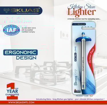Skuas International, one of the largest manufacturers of kitchen gas lighters and kitchenware products in India, has earned its reputation through exceptional quality and unparalleled customer support. With their extensive range of exotic products and innovative designs, they have created a perfect place for everyone. Founded in 2020 by MBA graduate Chirag Rakholiya, Skuas International is a proprietorship firm specializing in the manufacturing of kitchen gas lighters and metal products. Their product range includes stainless steel, MS body, and plastic handle gas lighters, as well as kitchen and chef knives, and stainless steel cheese graters. To reach a wider customer base, their products are marketed in major cities through a network of multi-brand dealers and distributors. All their products are marketed under the registered brand SKUAS, which represents the quality and reliability of Company.